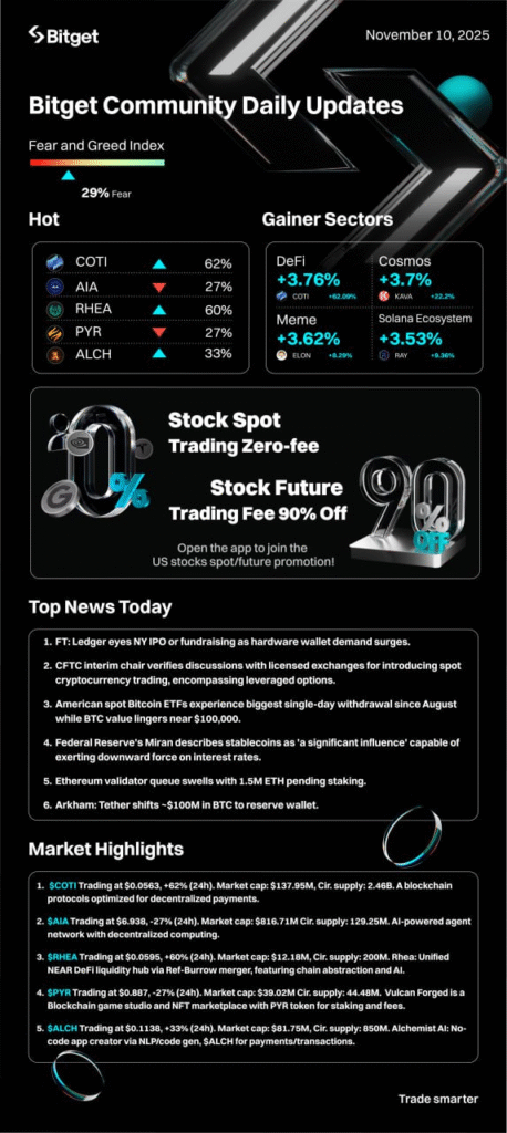 Tổng quan thị trường – khi tài chính truyền thống và crypto tiến gần hơn bao giờ hết Ngày 10/11/2025,
