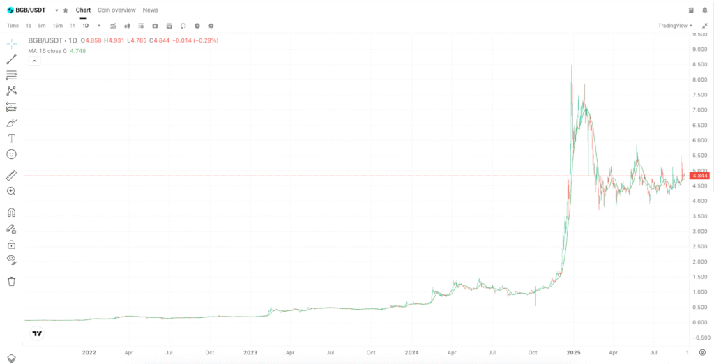 Thị trường đã phản ứng ngay lập tức và rõ rệt. BGB đạt mức cao nhất mọi thời đại tại $8,49 chỉ vài ngày sau đợt đốt, khi nhà giao dịch nhận thấy sự thay đổi cơ bản đang diễn ra. Đây là phản ứng hợp lý trước tình trạng khan hiếm được thiết kế cho một tài sản có tiện ích thực tế ngày càng tăng.