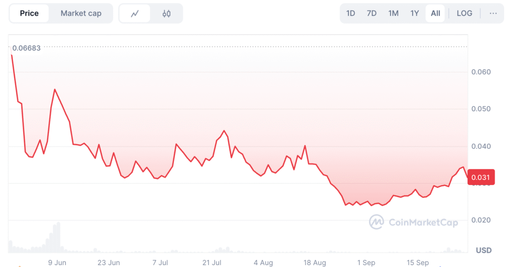 - Giá hiện tại: $0,03192, theo CoinMarketCap
