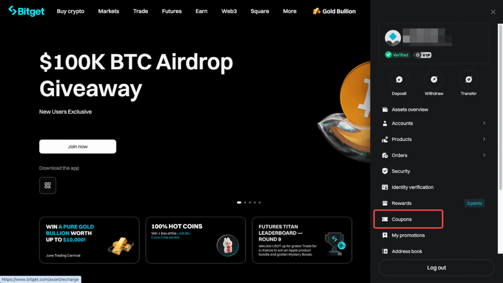- Truy cập Bitget và đăng nhập tài khoản.