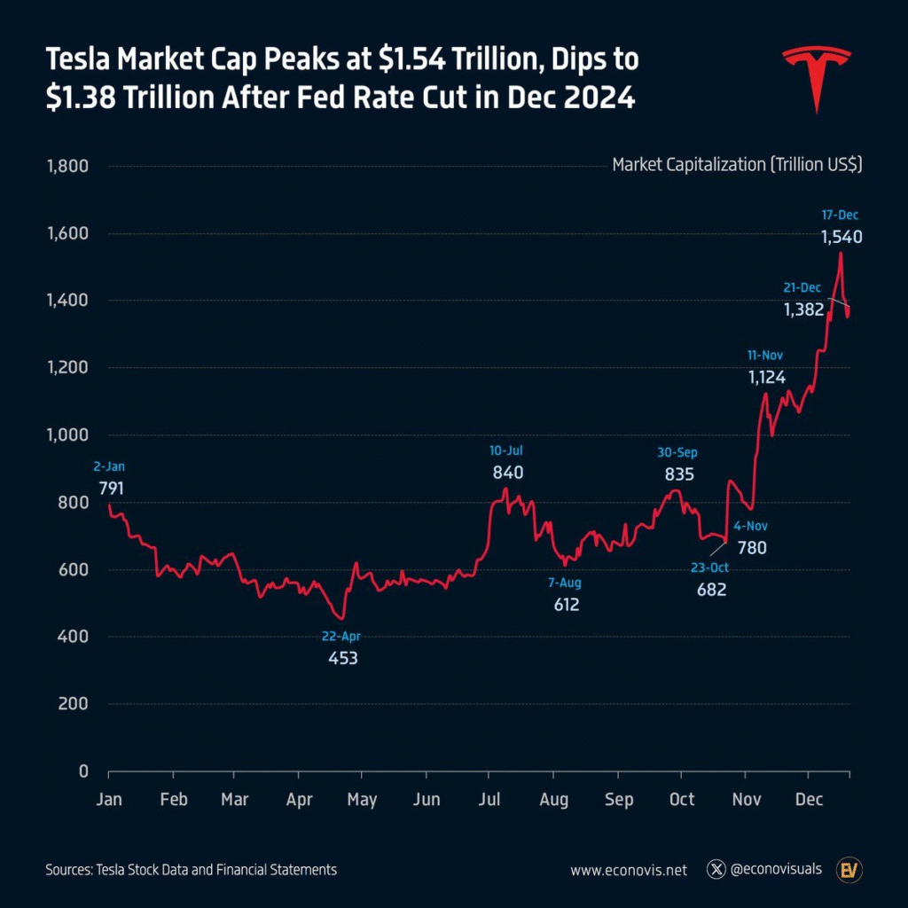 Đỉnh 2024: Đạt vốn hóa 1,54 nghìn tỷ đô vào tháng 12/2024.
