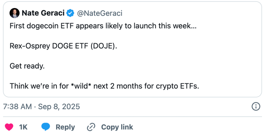 Những tiền lệ này cung cấp nền tảng giá trị cho bất kỳ dự báo giá Dogecoin nào vào lúc DOGE ETF đang lên sóng. Kỳ vọng mạnh mẽ rằng dòng tiền tổ chức tương tự có thể thúc đẩy lợi nhuận lớn cho DOGE, nhất là khi quỹ đầu cơ, quỹ lương hưu và các khách hàng môi giới nhỏ lẻ có thể tiếp cận Dogecoin qua một sản phẩm quen thuộc.