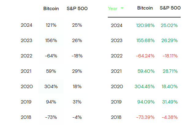 Bitcoin so với S&P 500 (Hiệu suất gần đây)
